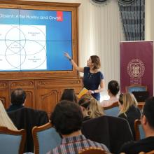 Bölümümüzün düzenlediği “The Poetics of Utopian Vision” adlı düşünce ve konuşma dizisinin dördüncüsü, 06 Mayıs 2019 Pazartesi günü Prof. Dr. Fuat Sezgin Konferans Salonu'nda 13:30-14:30 saatleri arasında Koç Üniversitesi Akademik Yazı Programı öğretim görevlisi Dr. Burcu Kayışçı Akkoyun'un “Dystopia and Dissent: After Huxley and Orwell” başlıklı konuşmasıyla gerçekleşmiştir.