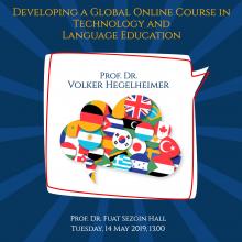 14 Mayıs 2019 Salı günü Güvercinlik Konferans Salonu'nda 13:00'te bölümümüz davetlisi olan Iowa State Üniversitesi Uygulamalı Dilbilim ve Teknoloji programı öğretim üyesi Prof. Dr. Volker Hegelheimer tarafından “Developing a Global Online Course in Technology and Language Education” başlıklı bir konuşmayla yapılacaktır.